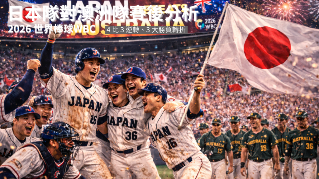 如果你只看最後比分,可能會以為這場 WBC 經典賽只是日本隊又一次照表操課的勝利;但真正看完整場比賽就會知道,這其實是一場很典型的國際賽高壓戰。日本隊雖在 2026 年 3 月 8 日於東京巨蛋以 4 比 3 擊敗澳洲隊,但真正改變勝負的關鍵,不只是吉田正尚第七局的逆轉兩分砲,還包括第八局補上的保險分,以及整場比賽裡日本在關鍵局數的執行能力。對許多球迷來說,這場日本對澳洲之所以話題性居高不下,也和大谷翔平的高討論度有關;不過若單看整場WBC 經典賽 比賽內容,會發現真正決定勝負的仍然是日本隊在後段把握機會的能力,而不是單一球星的個人秀。